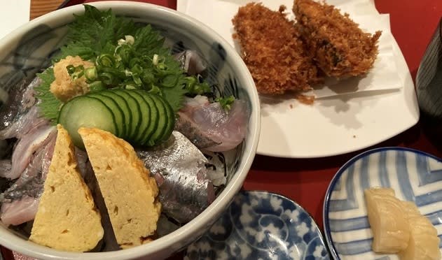 って、それ、鰺のどんぶりにカツオフライを食べてきたってことで、