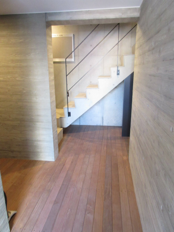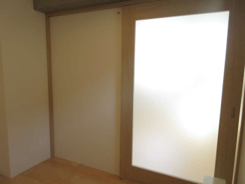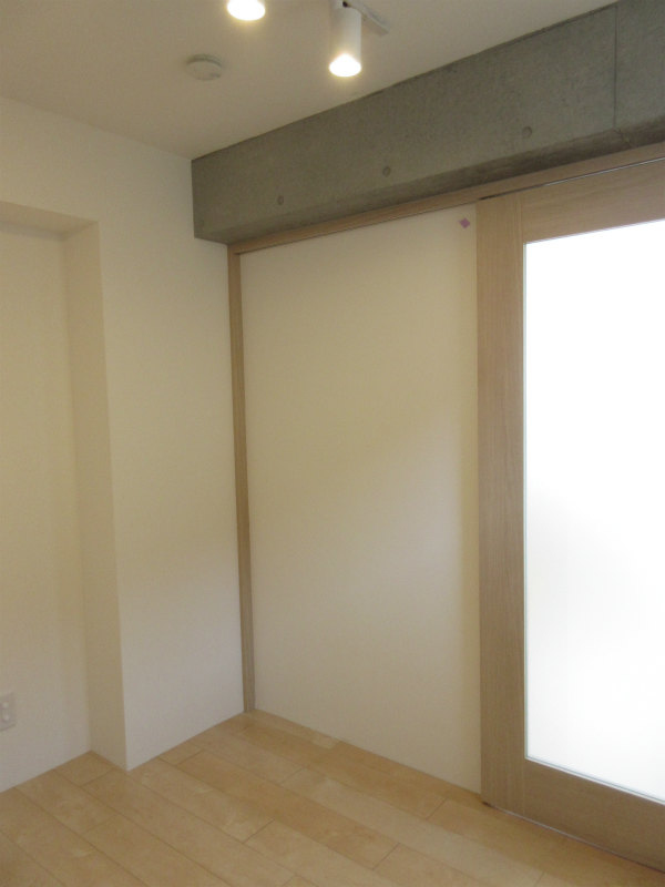ナチュラルな床材や建具に、鉄筋コンクリートの梁をあらわしにした室内。